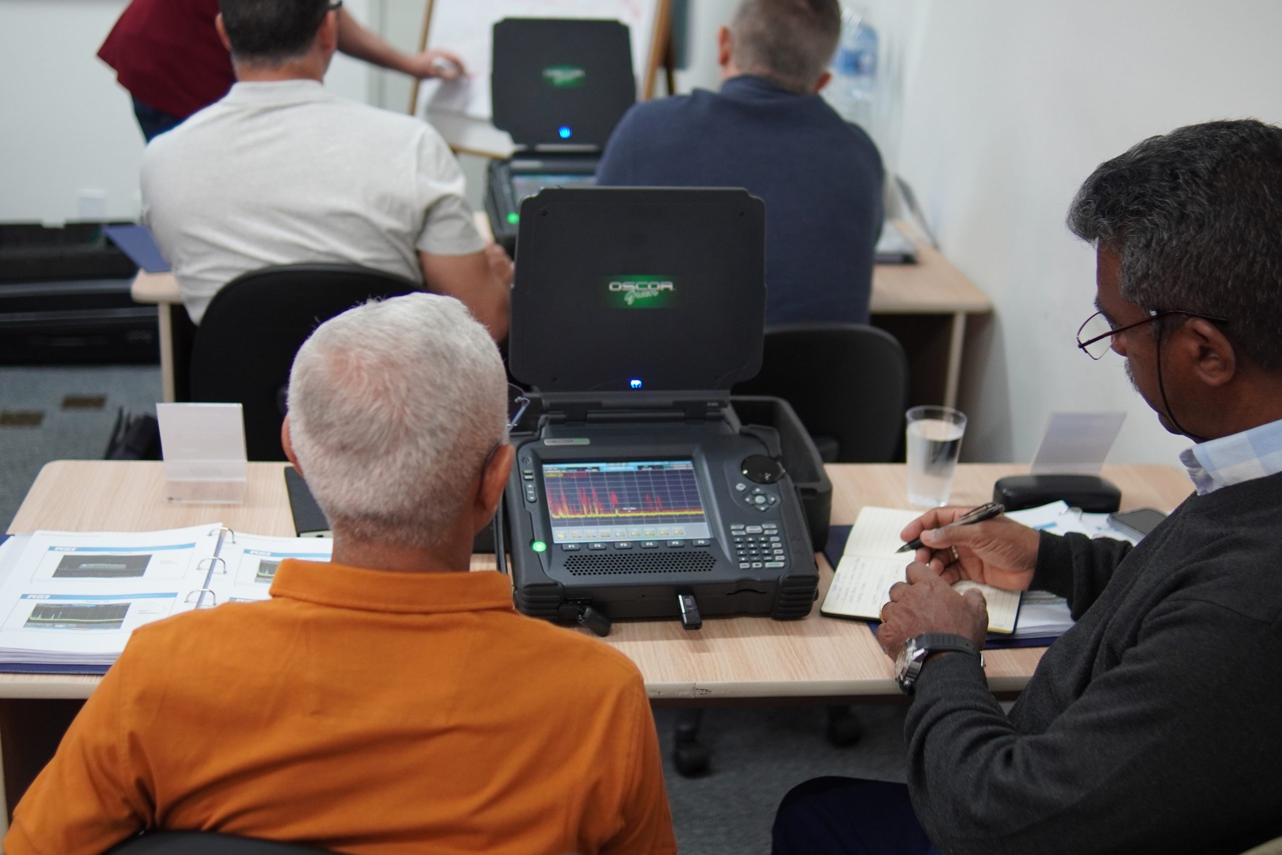 Durante o treinamento, os participantes tiveram contato direto com alguns dos equipamentos mais avançados do mercado de segurança em contrainteligência, incluindo analisadores de espectro, detectores de junção não linear, receptores de detecção de sinais e ferramentas especializadas para análise de linhas e redes.