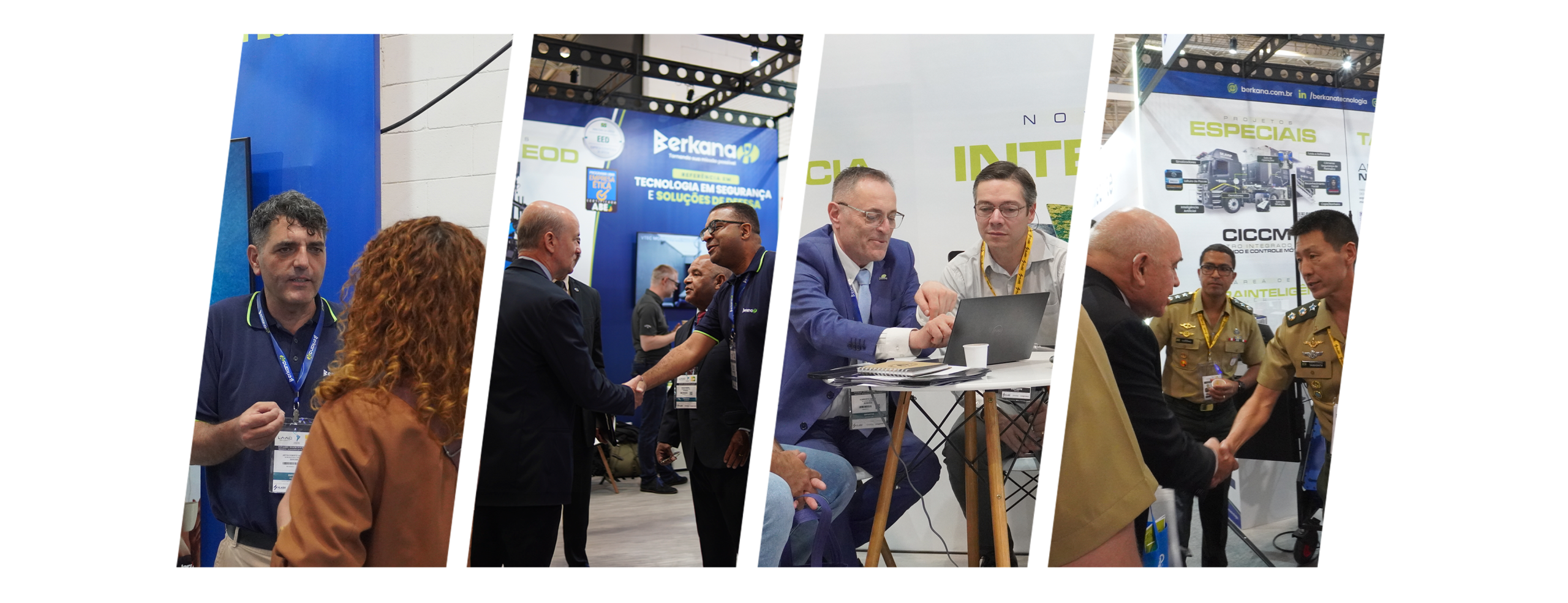 Durante a exposição, o foco visual e comercial do estande foi direcionado para quatro pilares fundamentais de atuação da Berkana, projetados para atender às severas demandas das operações de segurança e defesa: